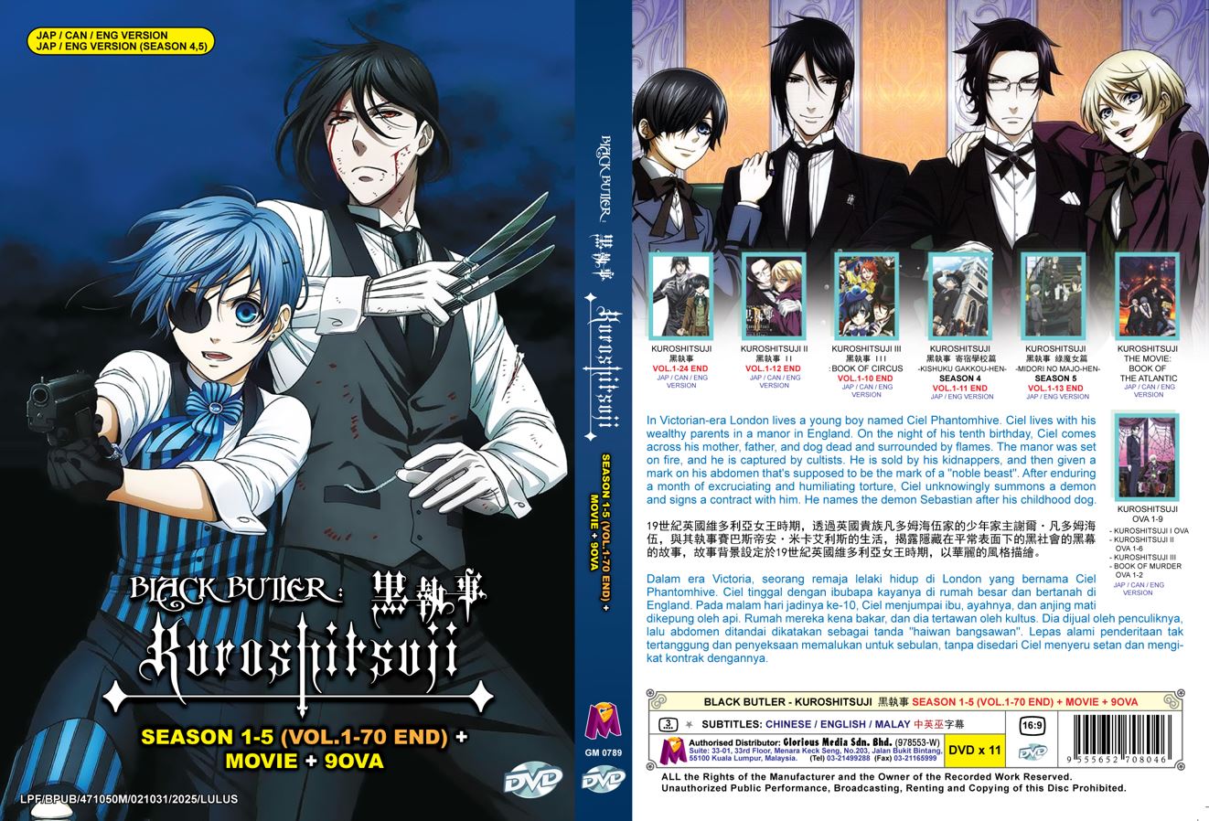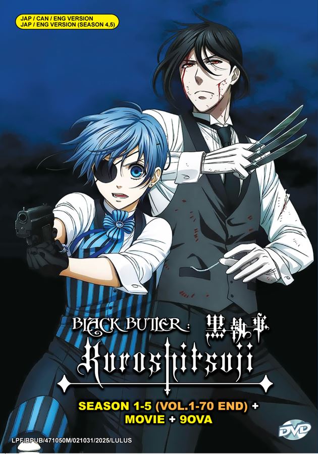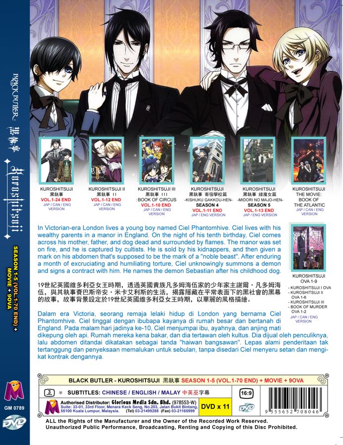 Black Butler - Kuroshitsuji Season 1-5 Vol.1-70 End+Movie+9OVA Japanese Cartoon Anime DVD English Cantonese Dubbed Subtitle English Chinese Malay